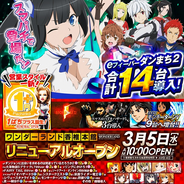 ワンダーランド香椎本館 5日 新台★入替 AM10時OPEN