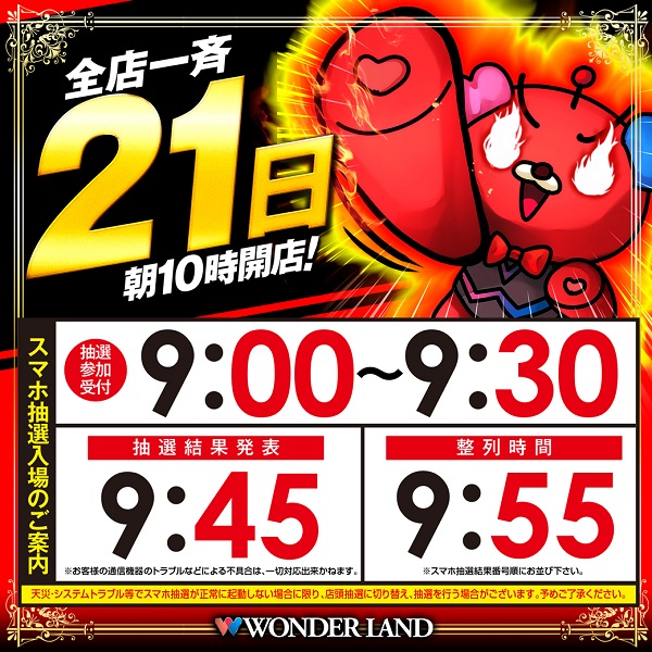 ワンダーランド香椎本館 21日 新台解禁 AM10時OPEN