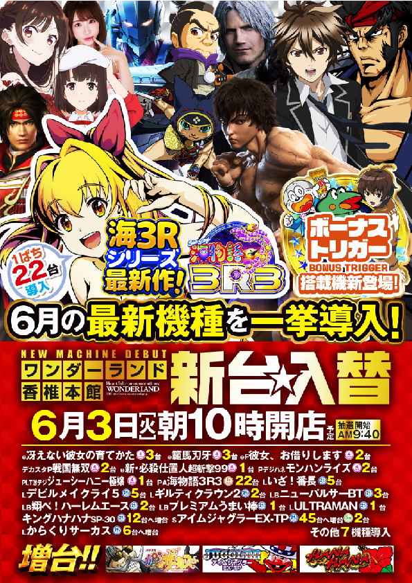 3日 新台★入替 朝10時開店 抽選時間 9:40~