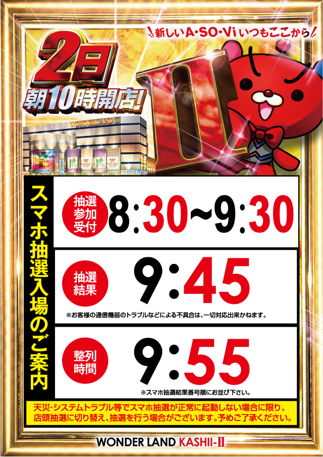 2日 朝10時開店 スマホ抽選受付9:00~9:30