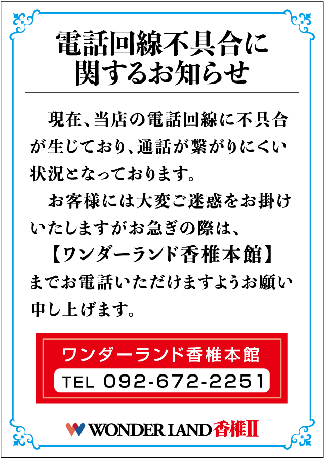 ワンダーランド香椎Ⅱのお知らせ一覧