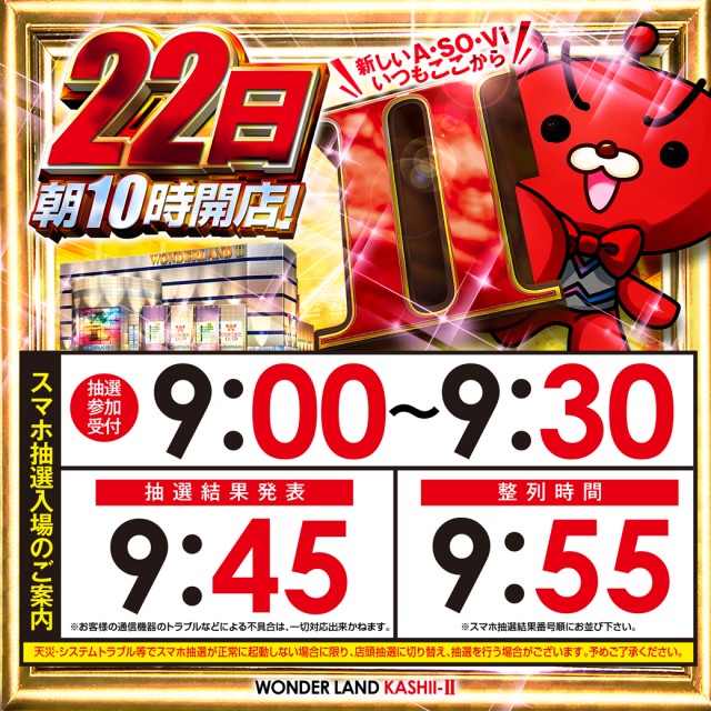 22日 朝10時開店 スマホ抽選受付9:00~9:30