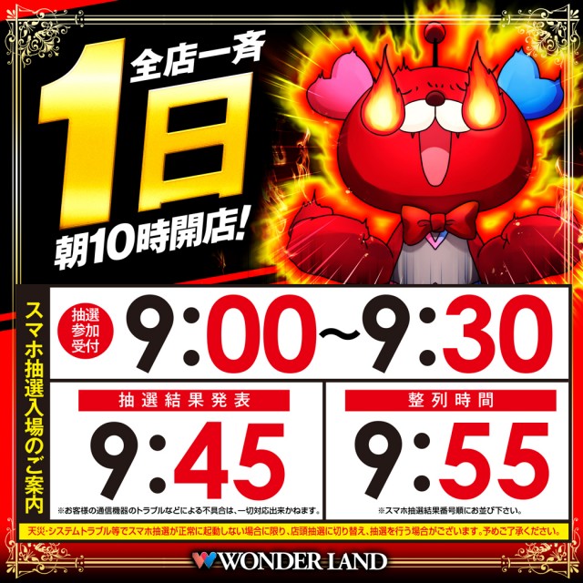 1日 朝10時開店 スマホ抽選受付9:00~9:30