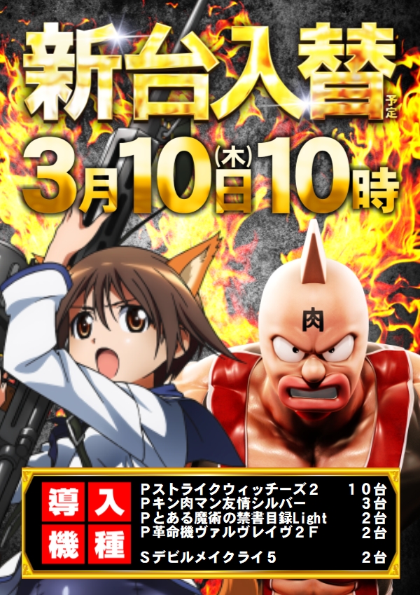 3月10日新台入替‼朝10時開店‼抽選開始は9時40分‼