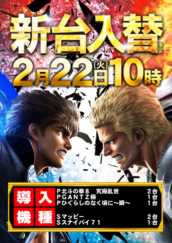 2月22日新台入替初日‼朝10時OPEN‼9:40抽選開始‼