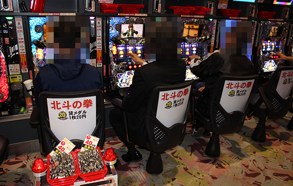15時を過ぎた頃の20円パチスロでは、「パチスロ北斗の拳 強敵」や「バジリスク~甲賀忍法帖~絆」、「マジカルハロウィン5」などのAT・ART機が大きな盛り上がりをみせていた。遊技をしているプレイヤーたちは満面の笑みを浮かべており、機種の魅力を堪能できていたように思う。