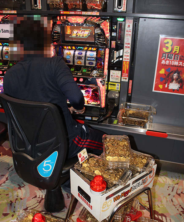 5円パチスロのにぎわいも大きく、しあわせそうなプレイヤーも多数。