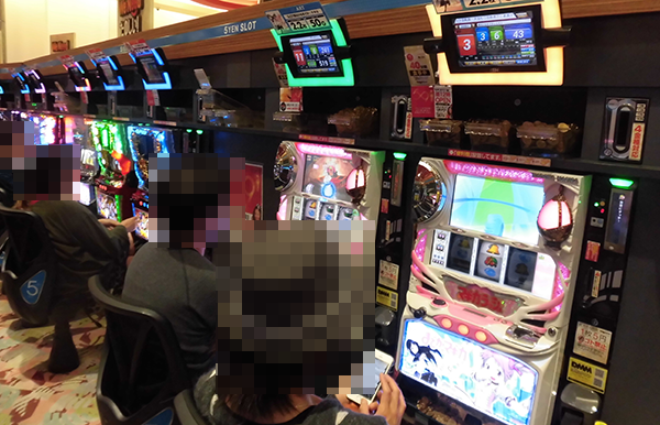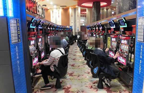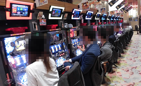 ホール内をみてみると、パチンコ・パチスロともにたくさんの笑顔が広がっていた。