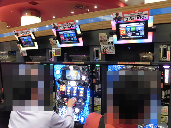 ボーナスタイプであるジャグラーシリーズのにぎわいも大きい。シンプルな告知を味わっているといった様子のプレイヤーもおり、満足度の高さがうかがえた。