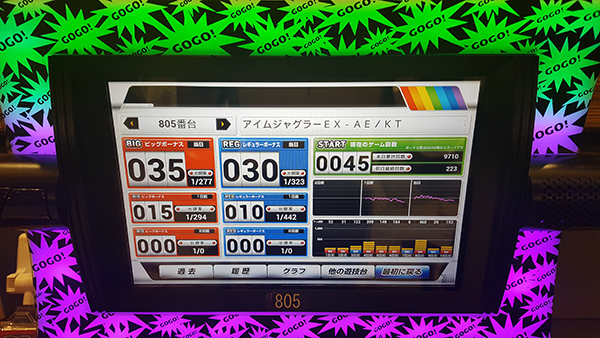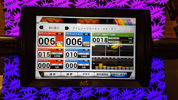 「アイムジャグラーEX-AE」を実戦機種に選び、チャレンジをスタートさせるも開始直後から気合いが空回り。12時までに消化したゲーム数は1500Gに満たずと、序盤から出遅れたかたちになってしまった。