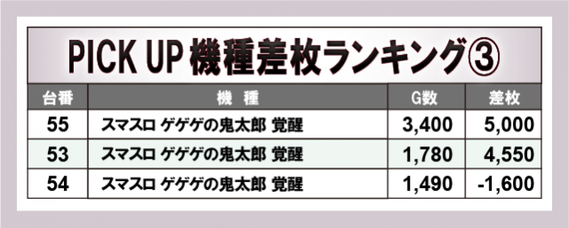 続いて優秀機種に目を向けると、複数のプラス差枚数を築いた台が目立っている。万枚OVERを達成した『パチスロ からくりサーカス』は言わずもがなの活躍で、その他『スマスロ北斗の拳』『スマスロ ゲゲゲの鬼太郎 覚醒』『L ToLOVEるダークネス』『L戦国乙女4 戦乱に閃く炯眼の軍師』から大きな熱気が放たれ、可能性を秘めていた台に一早く気付いたファンは、レバーオンに力が入ったことだろう。