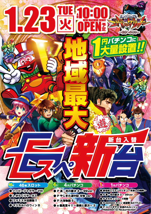 本日店休日 明日新台入替予定