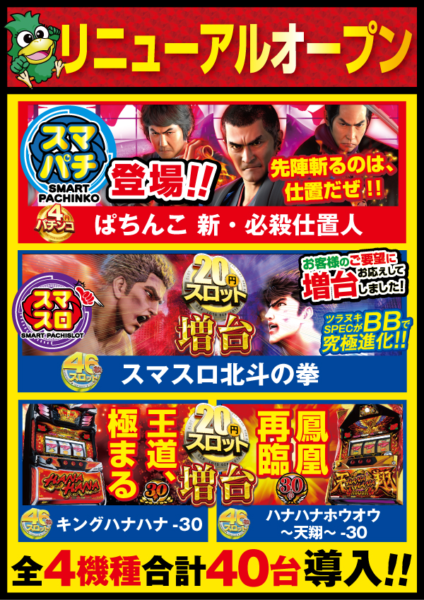 【4】パチ216台 【1】パチ216台 【0.25】パチ36台 【20】スロ446台 |