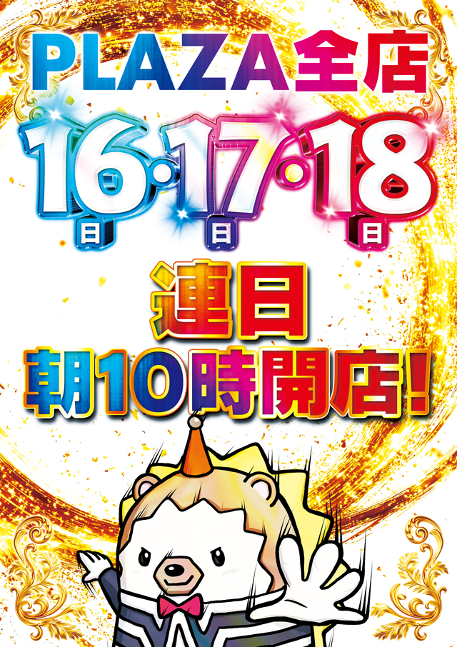 本日🌈11月17日(月)🌈プラザ全店10時開店!