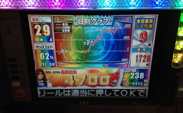 今回のアッパーは、706番台の【ファンキージャグラー】にて目撃された…