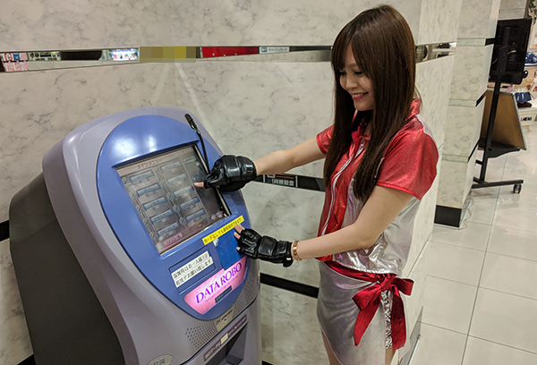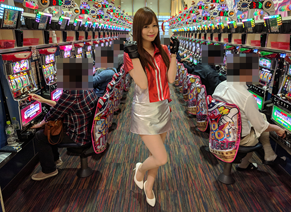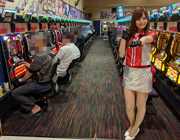 遊技台の情報を調べることができるデータ表示器を発見したかなこちゃん♪