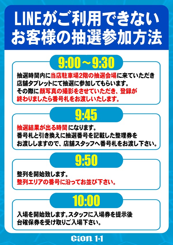 当店の新台情報、抽選時間をお送りします!