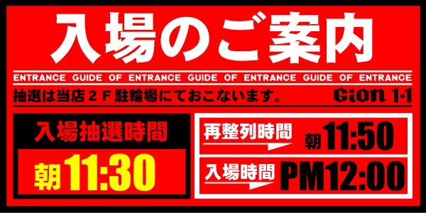 GION1★1からのご案内HYPER AMUSEMENT SPACE PACHINKO&SLOT 1178MACHINES5月13日(木)■□新台入替□■◆朝10時OPEN◆≪入場抽選≫