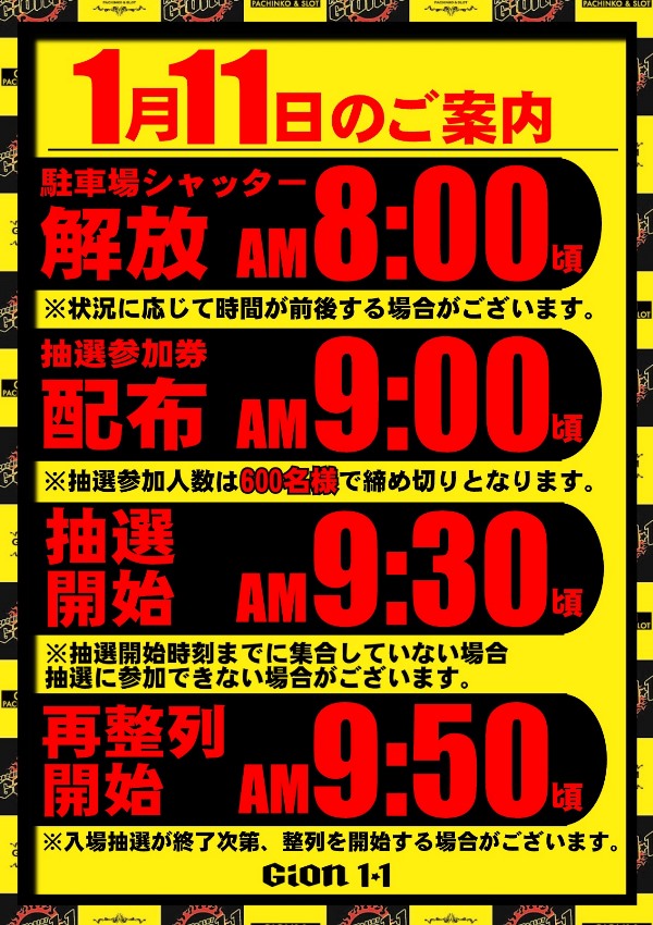 GION1.1 [1月11日] 朝10時FULL OPEN