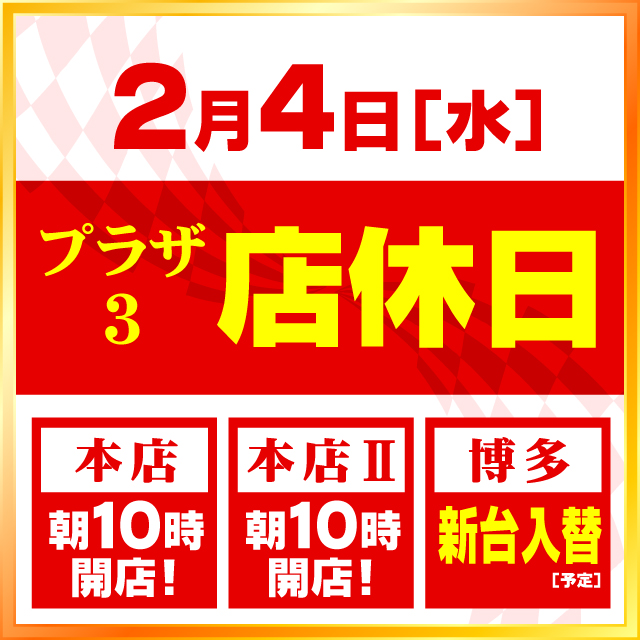 2月2日(月)西日本最大級!プラザ全店10時開店🌟