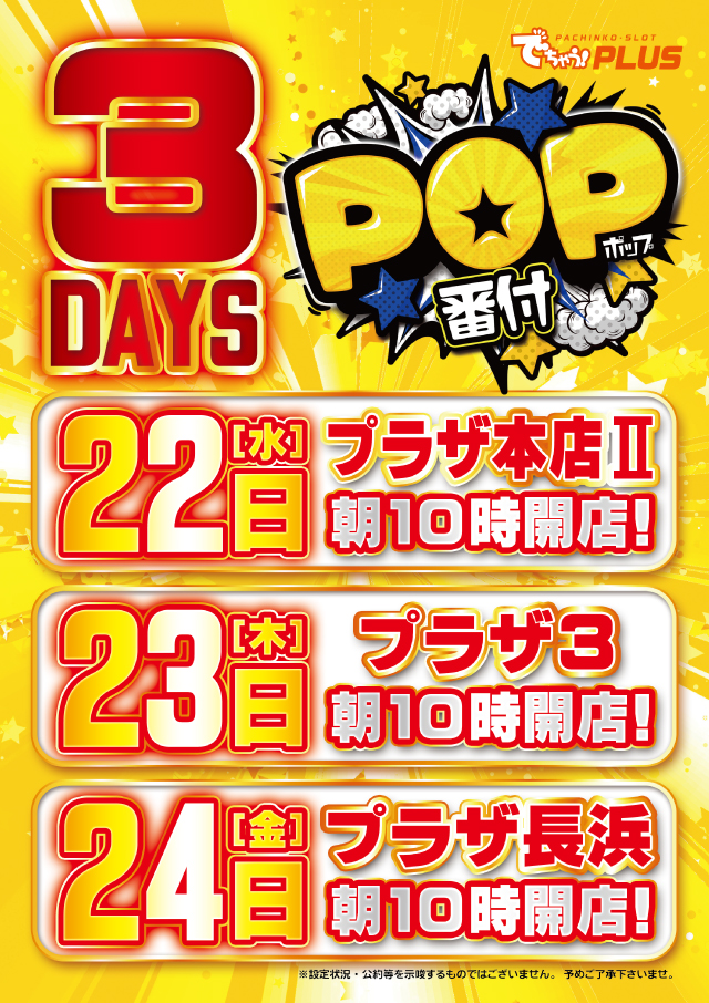 明日20日店休日😪明後日21日★新台入替★朝10時オープン🌈
