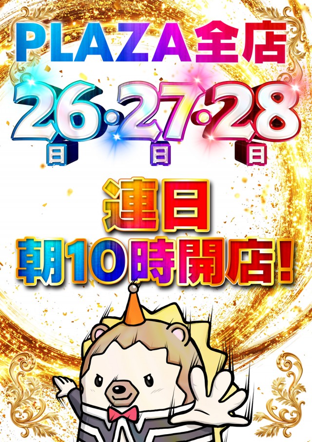 🌈26日・27日・28日🌈プラザ全店10時開店!