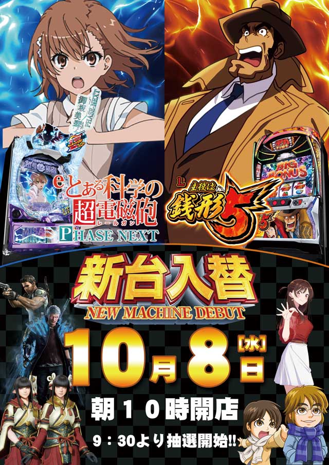 明日19日(水)新台入替10時オープン❗❗抽選時間9:30~