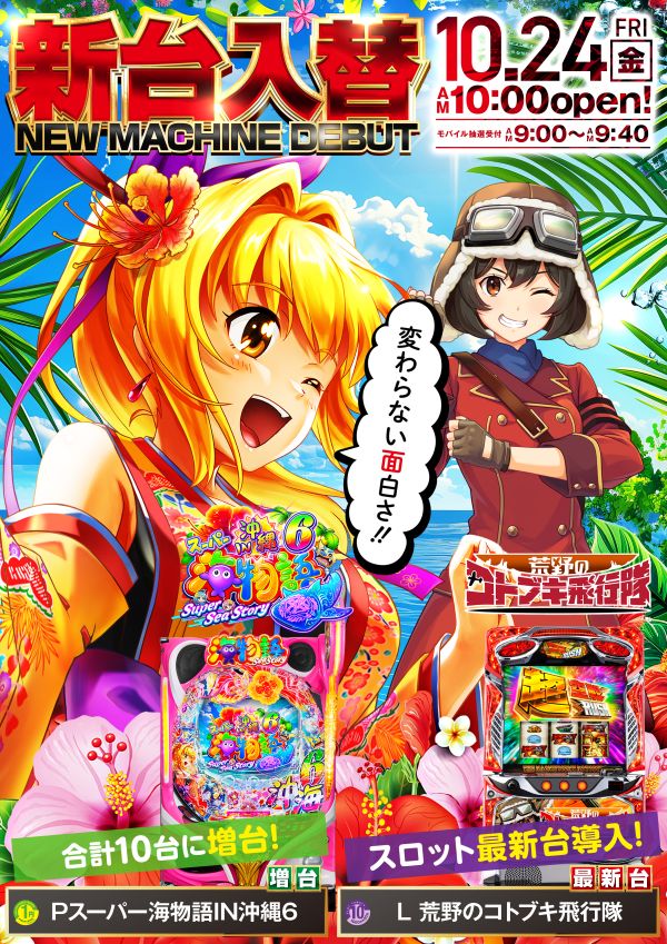 本日10月24日(金)新台入替!只今営業中!是非ご来店下さい