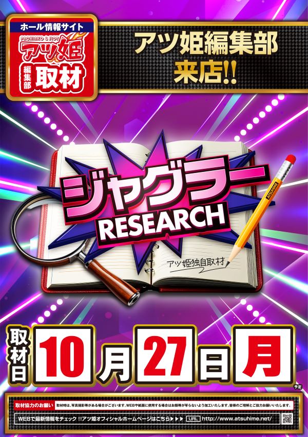 本日10月27日(月)アツ姫編集部来店!ジャグラー取材!!