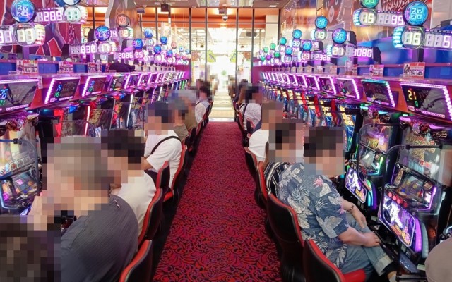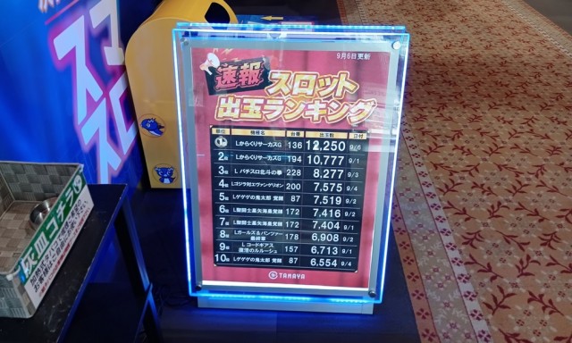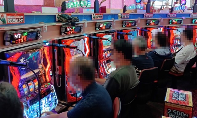 当日とくに店内を盛り上げた機種は上表の5機種。6.5号機から『パチスロ新鬼武者2』『パチスロ甲鉄城のカバネリ』、スマスロ機から『パチスロからくりサーカス』『スマスロ ゴールデンカムイ』、ジャグラーから『マイジャグラーⅤ』と各シリーズの定番機種たちが好調ぶりを披露しており、笑顔が絶えないエリアを形成していたと窺える。