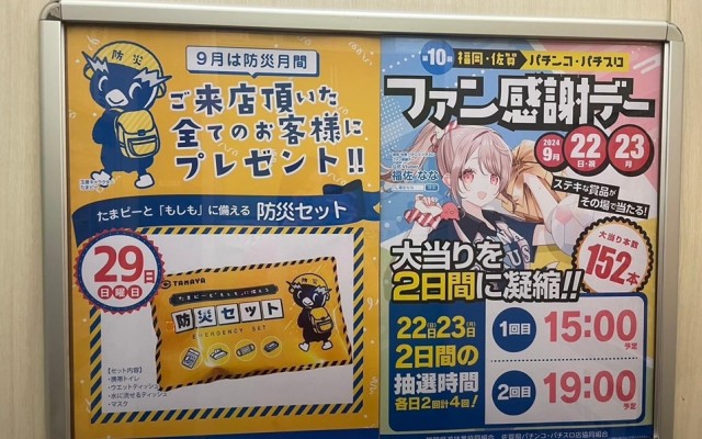 店内は広い通路で解放感満載!明日、明後日と実施されるファン感謝デー、29日には防災グッズの配布など様々な取り組みも予定されており、今後も充実した内容が期待できるホールだぞ!