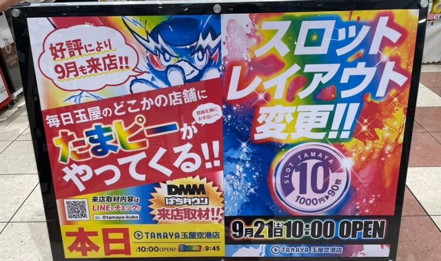9月21日、『玉屋空港店』にて「たまピー来店取材」が実施された。初回から熱い盛り上がりを見せている同店舗。その意気込みは開店前から並ぶファンに伝わっており、誰もがやる気を漲らせていたのが印象的だ。さっそく以下から出玉詳細データとともに、当日の様子を振り返っていこう!