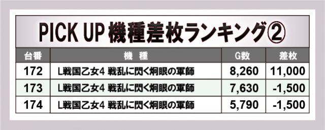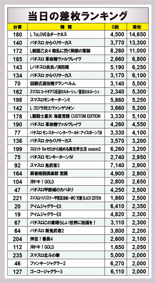 ※差枚数順に掲載しています。