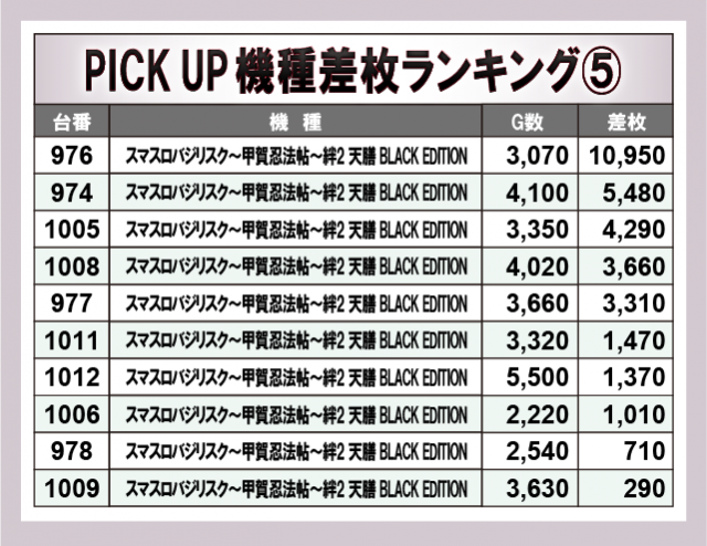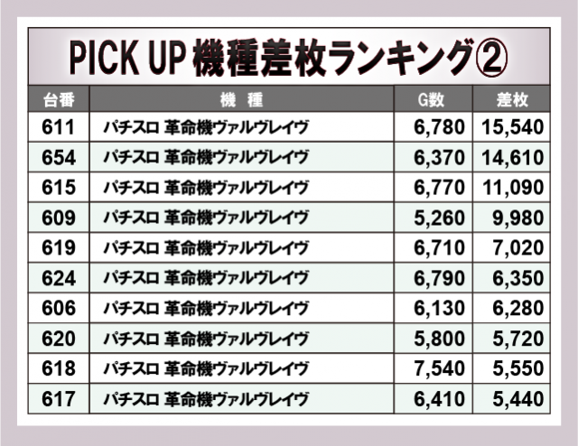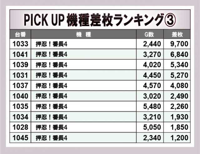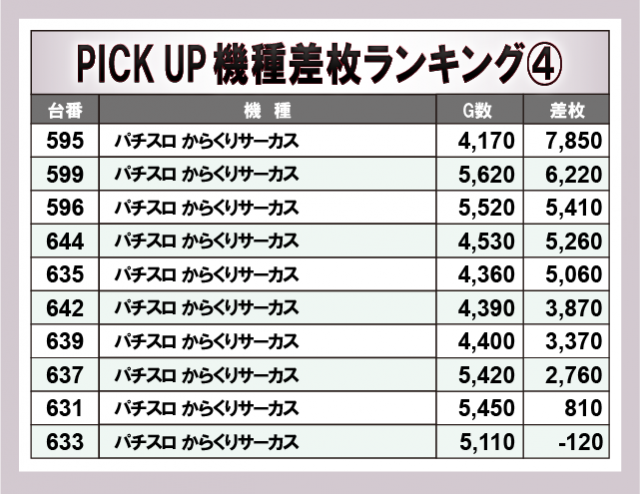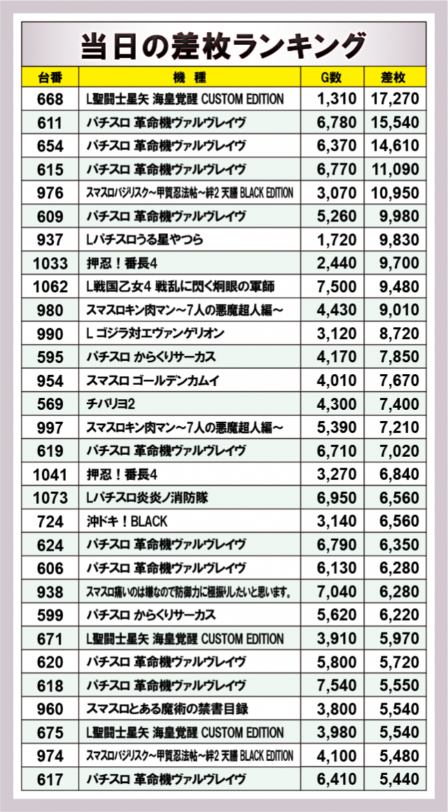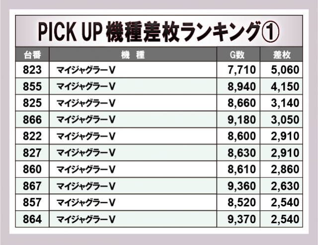 ※差枚数順に掲載しています。