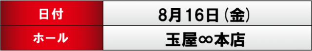 8月16日、玉屋創業71周年を記念した玉屋×DMMぱちタウンのコラボ企画「たまピー来店取材」が『玉屋∞本店』にて実施された。当日は玉屋創業71周年という大きな節目を迎えるにあたり、朝から約1600人と設置台数を遥に超えるファンが集結。スロットコーナー・パチンココーナーともにほぼ満台でスタートとなった。果たしてどのような1日になったのか…以下から出玉詳細データとともに店内の様子をお伝えしていこう!