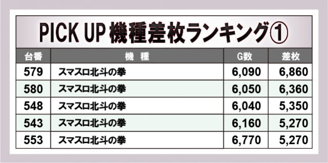 上表5機種で特に叩きがいのある状況が整っており、『スマスロ北斗の拳』などのスマスロ機だけでなく、『マイジャグラーⅤ』もコンスタントなボーナス当選を見せており、あらゆる機種が活躍していたのが見て取れる。