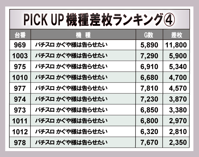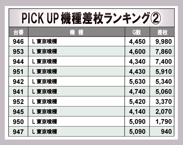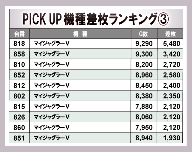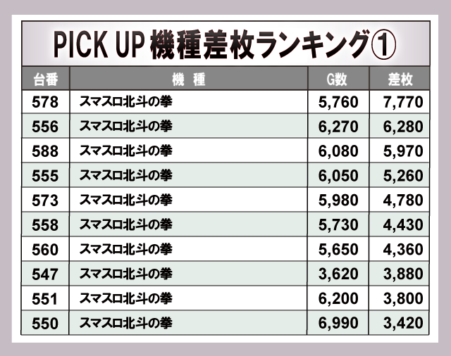 上表の7機種は万枚OVER台を筆頭に4桁プラス台が多数発生し、ファンが自信をもってレバーを叩いていた様子が目に浮かぶ。その中でも『スマスロ北斗の拳』『L 東京喰種』『マイジャグラーⅤ』『パチスロ かぐや様は告らせたい』は10台以上のまとまった出玉を確保しており、ホール中で大いに盛り上がりを見せていた。