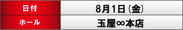 8月1日、『玉屋∞本店』にて「玉屋魂取材」が全店合同実施された。グループ創業月間のはじまりとなるこの日、設置台数を遥に超えるファンが集結!スロットコーナー・パチンココーナーともにほぼ満台でスタートとなった。果たしてどのような1日となったのか…以下から出玉詳細データとともに店内の様子をお伝えしていこう!