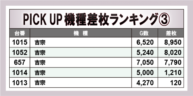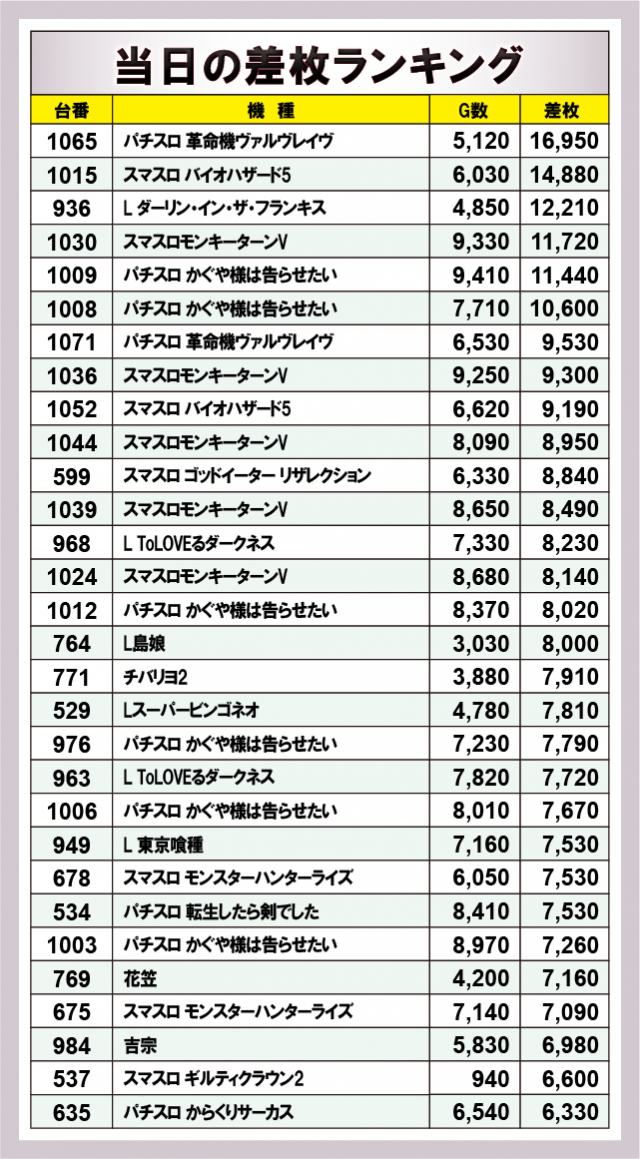 ※差枚数順に掲載しています。