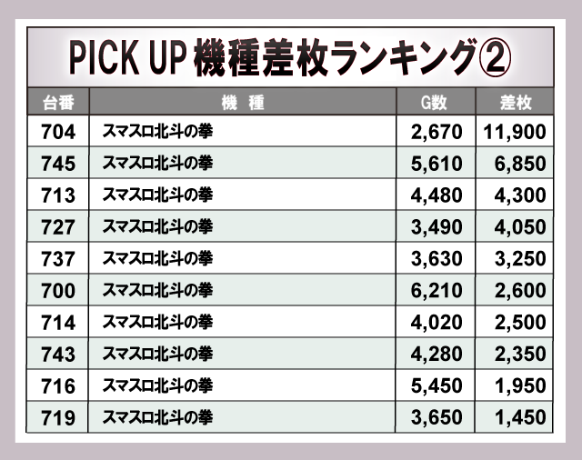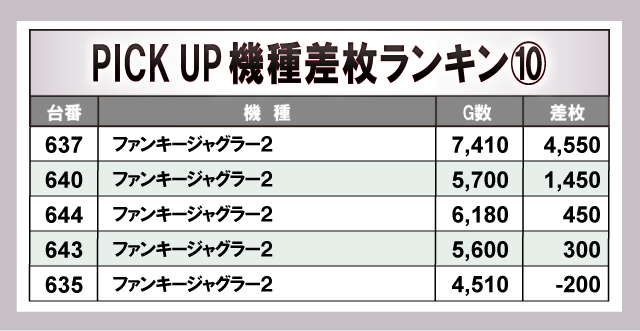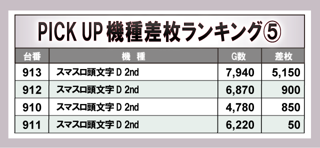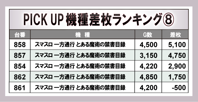人気スマスロ機から機種単位での盛り上がりが目立っており、万枚OVER台を筆頭に4桁プラス台が多数発生!また『スマスロ頭文字D 2nd』『今日から俺は!! パチスロ編』は全台プラス差枚数をマークし、優秀機種として活躍を披露。今後も要注目エリアなのは間違いないだろう。