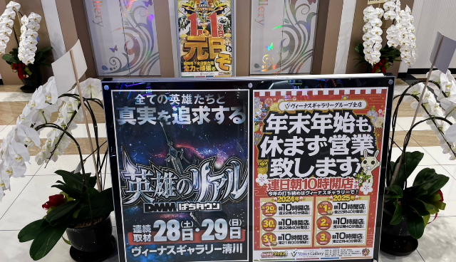 12月29日、昨日につづき『ヴィーナスギャラリー清川店』にて「英雄のリアル」が連続実施された。朝から104人のファンが集まり、開店時間となるその瞬間を待ちわびていたのが印象に残る。同店もまたファンを笑顔にしようと気概に満ちており、盛り上がる予感を抑えきれなかった。果たしてどのような1日になったのか…さっそく詳細データとともに、店内の様子をお届けしていこう!