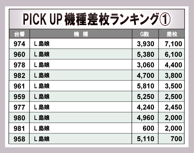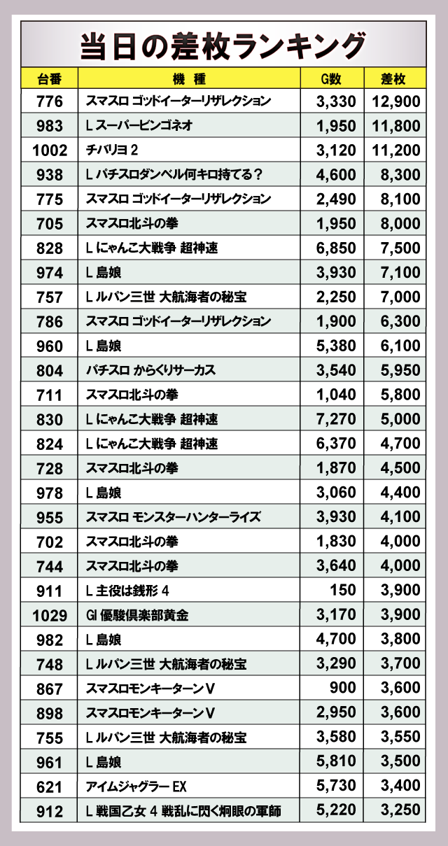 ※差枚数順に掲載しています。