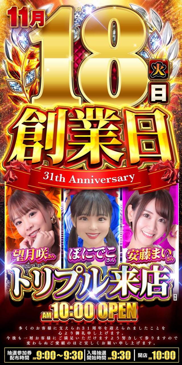 🎊11月18日 火曜日は創業日〜トリプル来店〜🎊