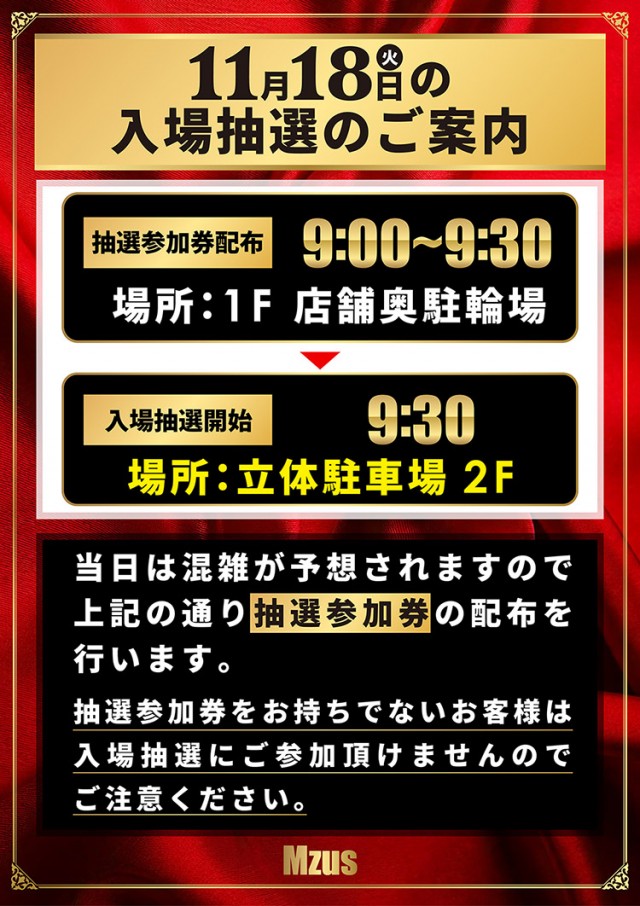 ■9:40抽選開始 ■新台入替当日など▶︎9:30抽選開始 |