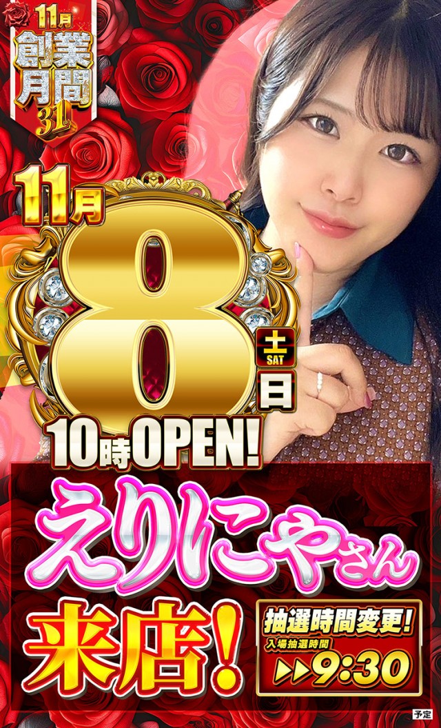 ★11月は創業月間★8日(土)えりにゃさん来店!