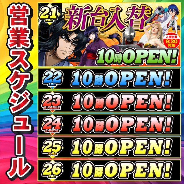 ■9:40抽選開始 ■新台入替当日など▶︎9:30抽選開始 |
