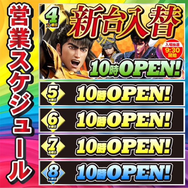 ■9:40抽選開始 ■新台入替当日など▶︎9:30抽選開始 |