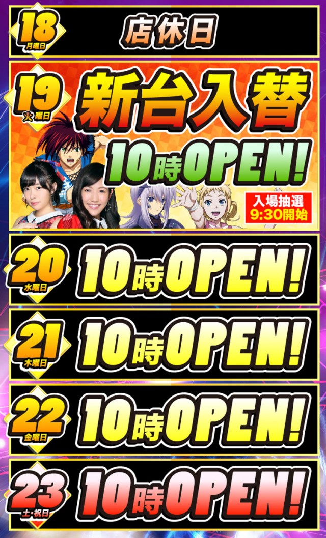 ■9:40抽選開始 ■新台入替当日など▶︎9:30抽選開始 |