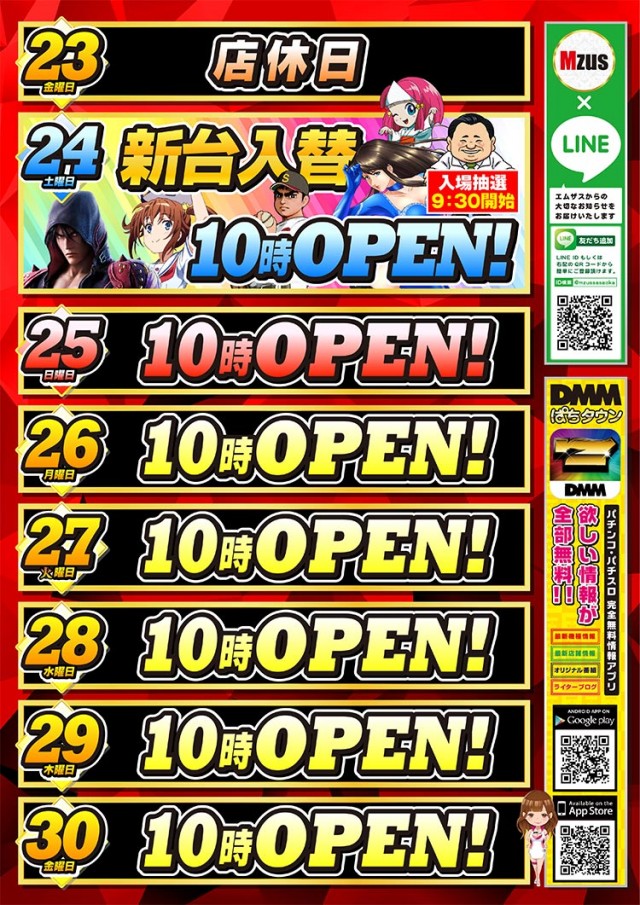■9:40抽選開始 ■新台入替当日など▶︎9:30抽選開始 |