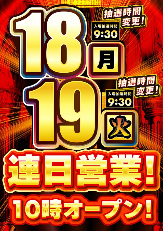 ■9:40抽選開始 ■新台入替当日など▶︎9:30抽選開始 |